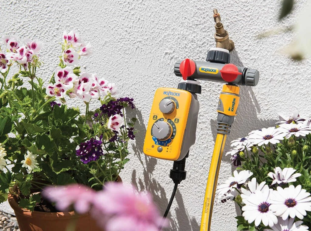 Met de 2-weg Hozelock waterverdeler kunt u twee bewateringsapparaten of slangen rechtstreeks op één buitenkraan aansluiten. Een of beide aansluitingen kunnen worden gebruikt door het water te regelen met de kiesschijf aan de voorkant.